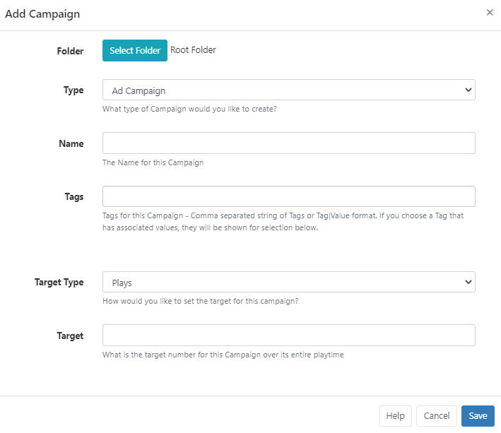 Use the drop down to set the Target Type for this Ad Campaign as Plays, Budget or Impressions.