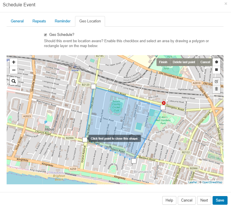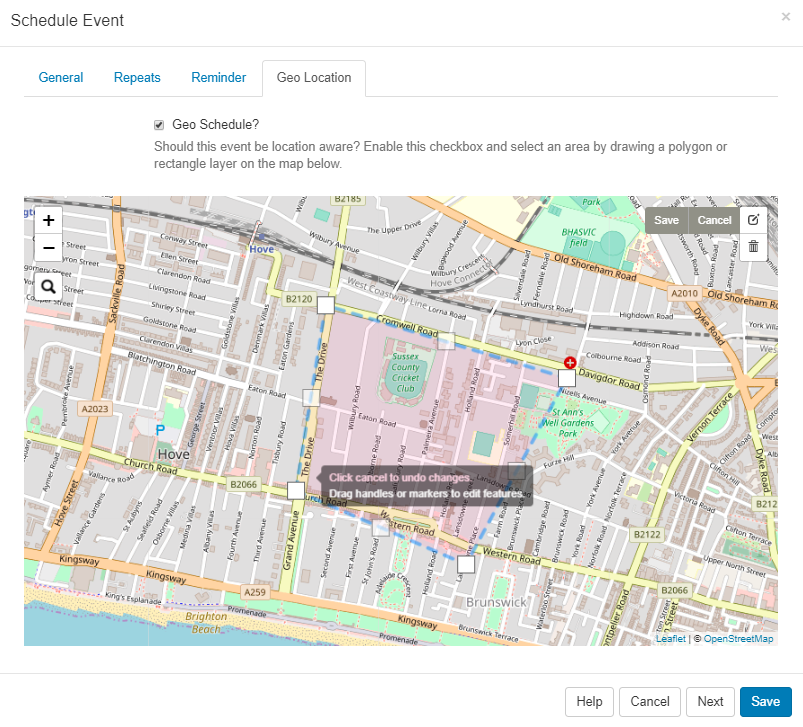 Scheduled Events can be configured to be location aware with locations displayed on a map view.