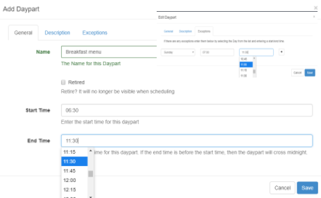 Does your content differ from the weekday to the weekend? No problem, use the Exception functionality to tailor the Daypart to exactly what you need, when you need it!