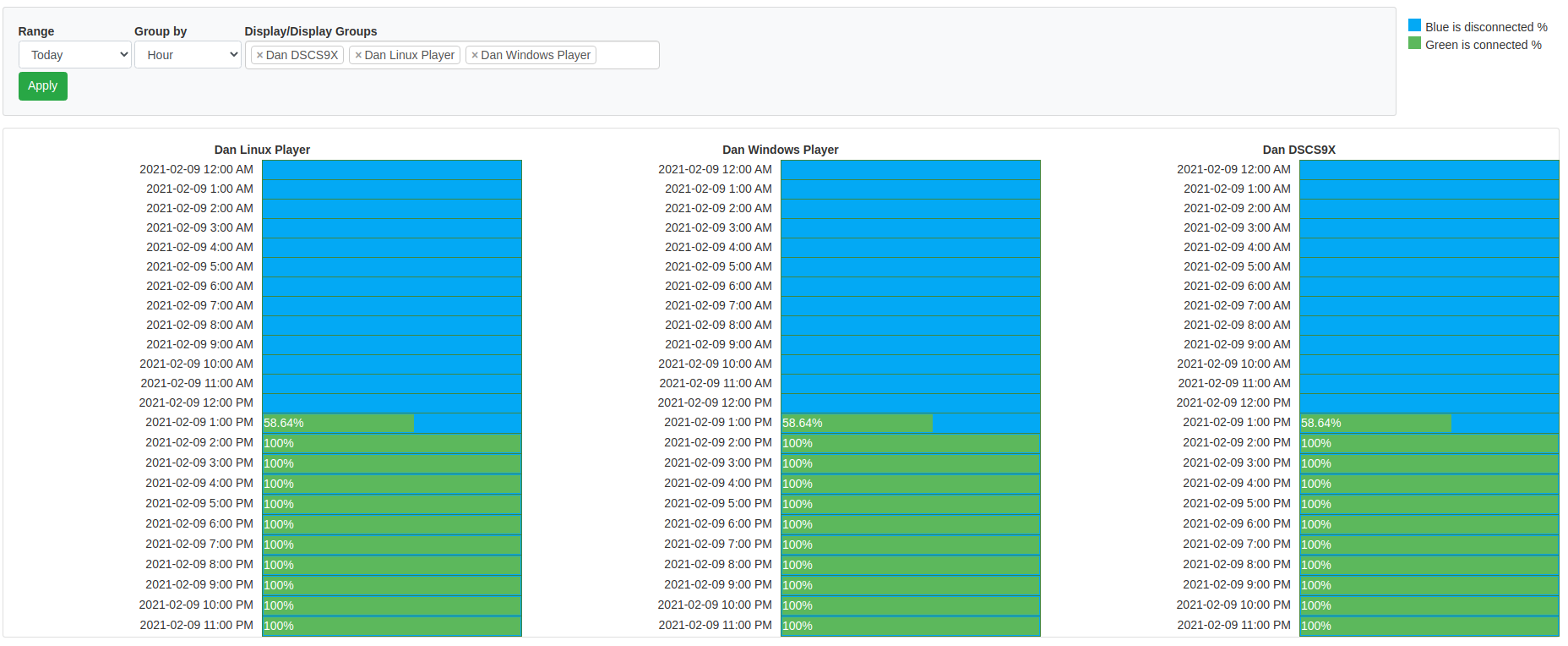 A new report centre has been developed to pull all reports into one place so that they are easy to find and run. There is also a new report called "Time Connected" which shows a visual summary of how much Displays are connected.