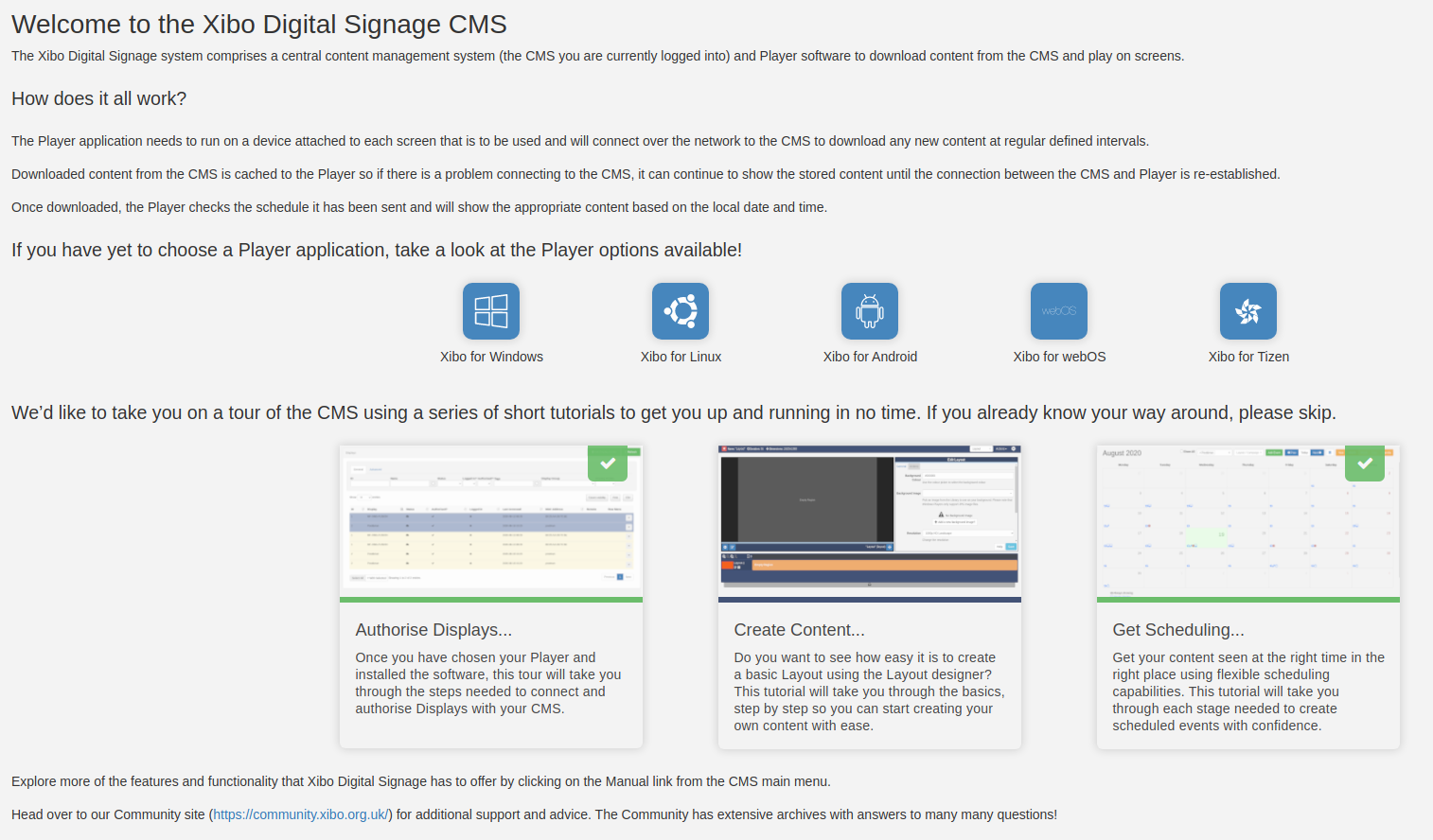 The CMS web portal has been updated with the latest libraries and frameworks such as Alpine 3.12, Slim 4 and Bootstrap 4. These changes keep Xibo at the cutting edge of modern security best practices and design trends.