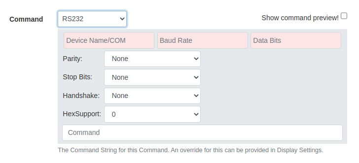 We've overhauled commands to make them easier to configure. Each command can be created with a general command string, and then customised by Display Profile if required. A command builder is available to make creating commands as straightforward as selecting a few options.